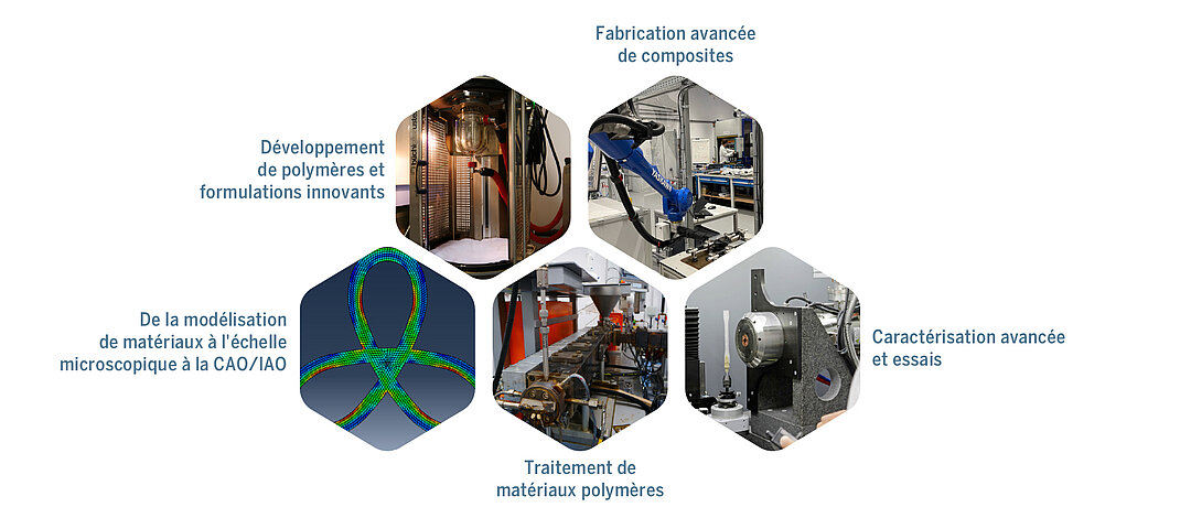 Le SCMM est équipé de technologies de fabrication préindustrielles (infusion liquide, moulage par transfert de résine, thermoformage, enroulement robotisé de filaments, soudage IR), permettant la fabrication de pièces composites selon des processus qualifiés dans les secteurs de l'automobile, de l'aéronautique et de l'espace, à l'échelle appropriée.